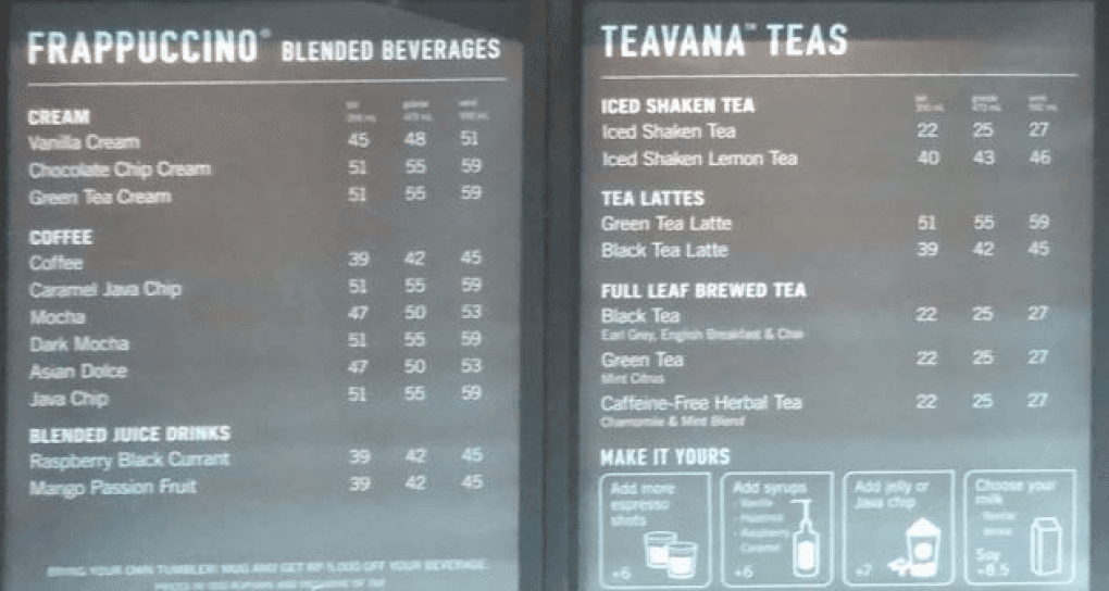 Not only are customers confused about different kind of coffees, but they are also confused about the names of the different cup sizes (Trenta, Grande, etc.), and the additional items (milk, etc.), which can be overwhelming for new customers.